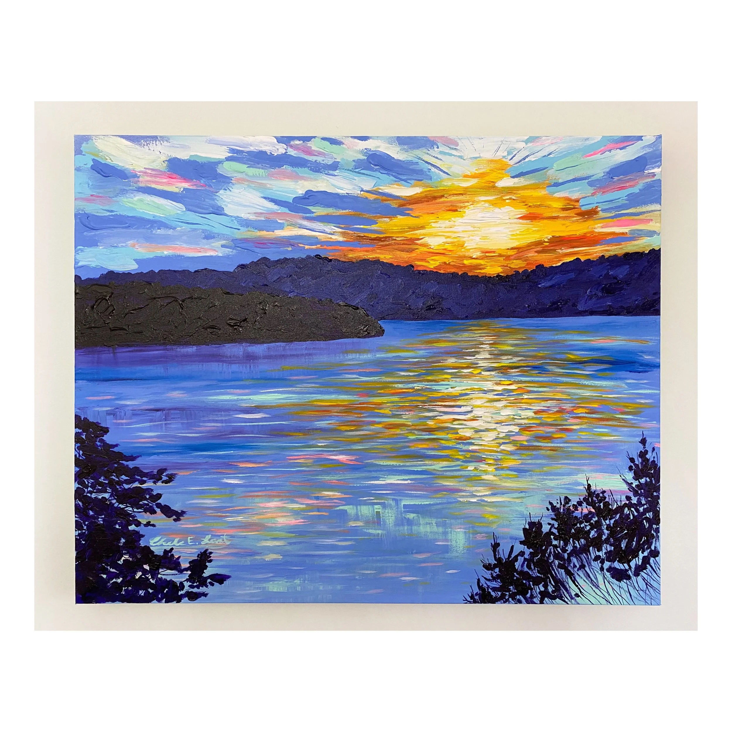 Thank you for creating the painting, "Summer Solstice at the lake." To say we are pleased would be an understatement. Your creativity captured the essence of the feeling we enjoyed from the deck of our lake house. It hangs in my study in a position that captures my eye every time I look up. It prompts an internal smile every time I see it