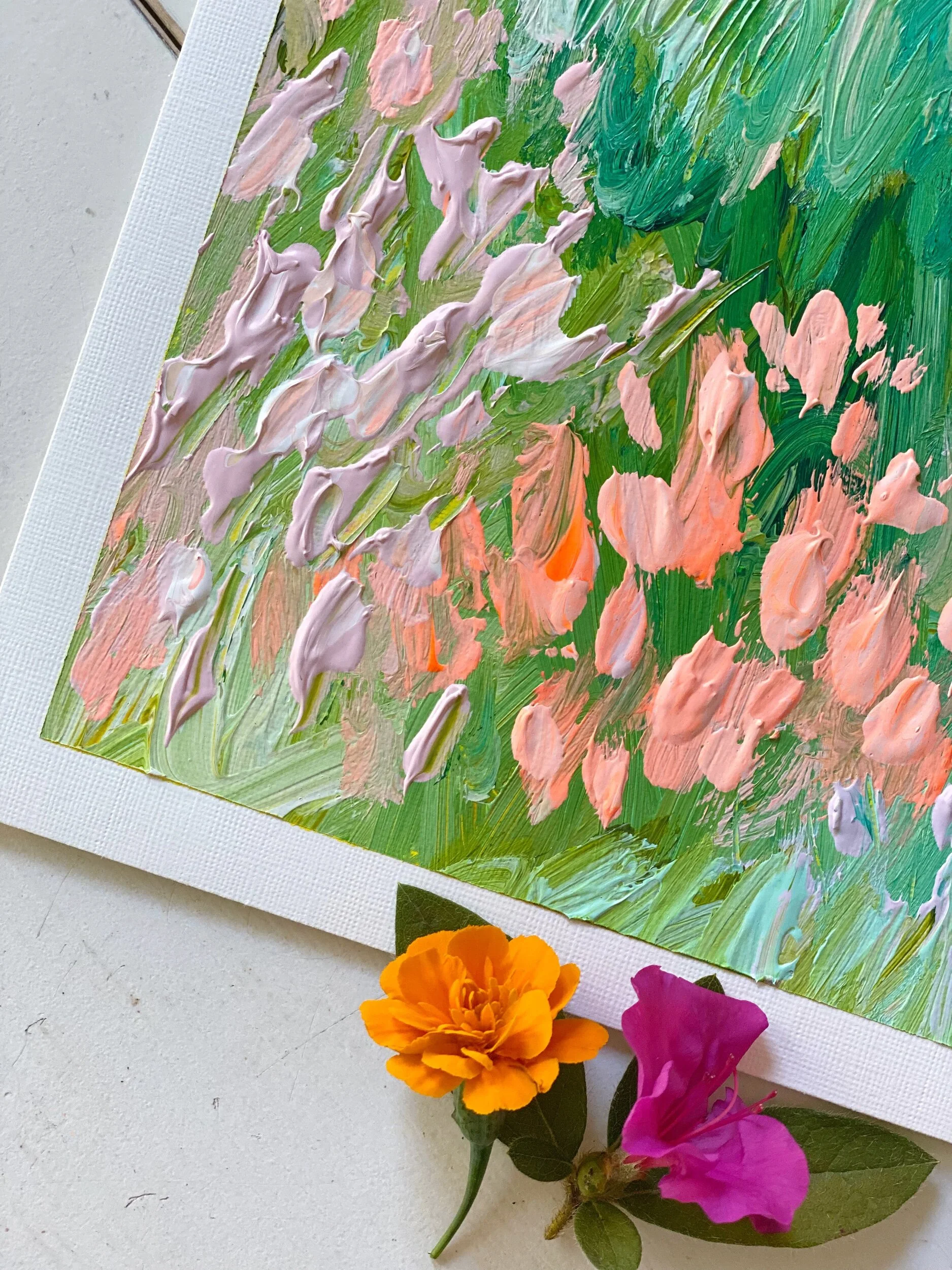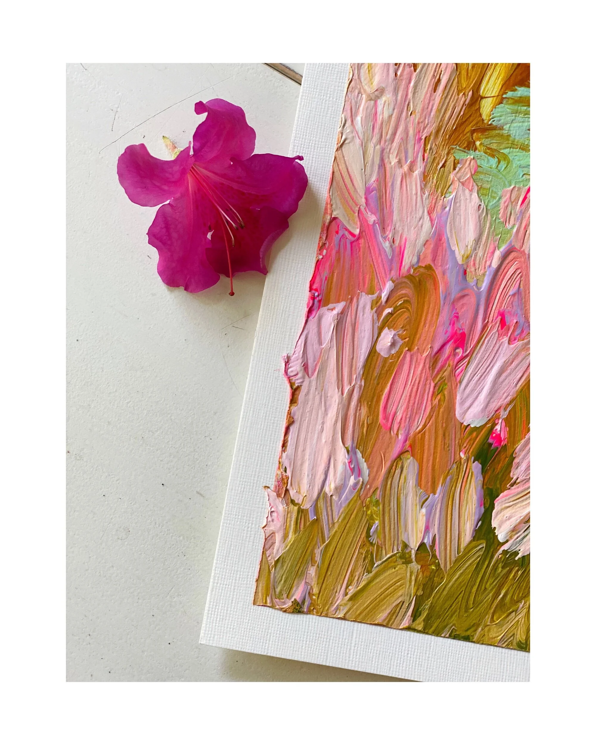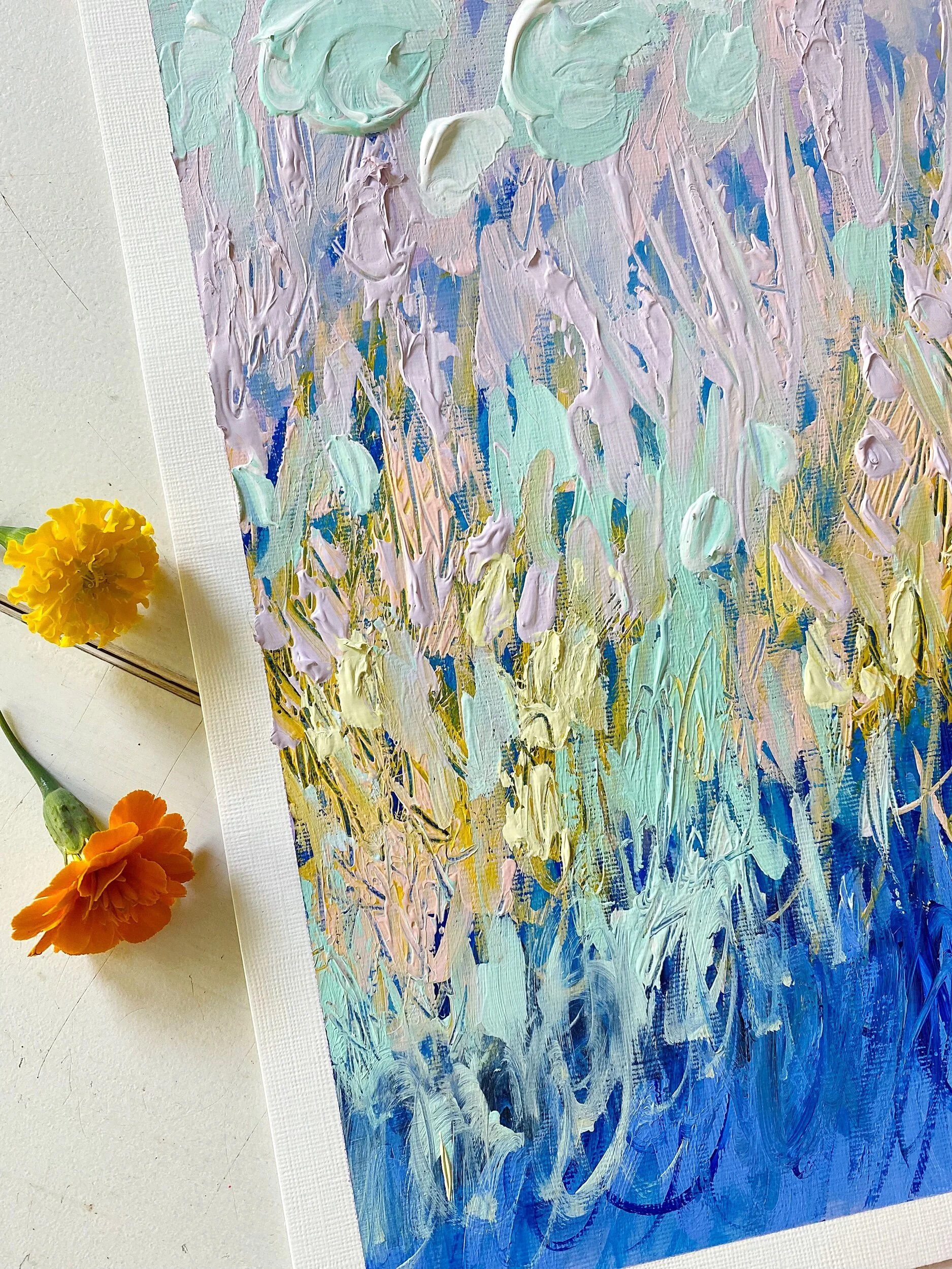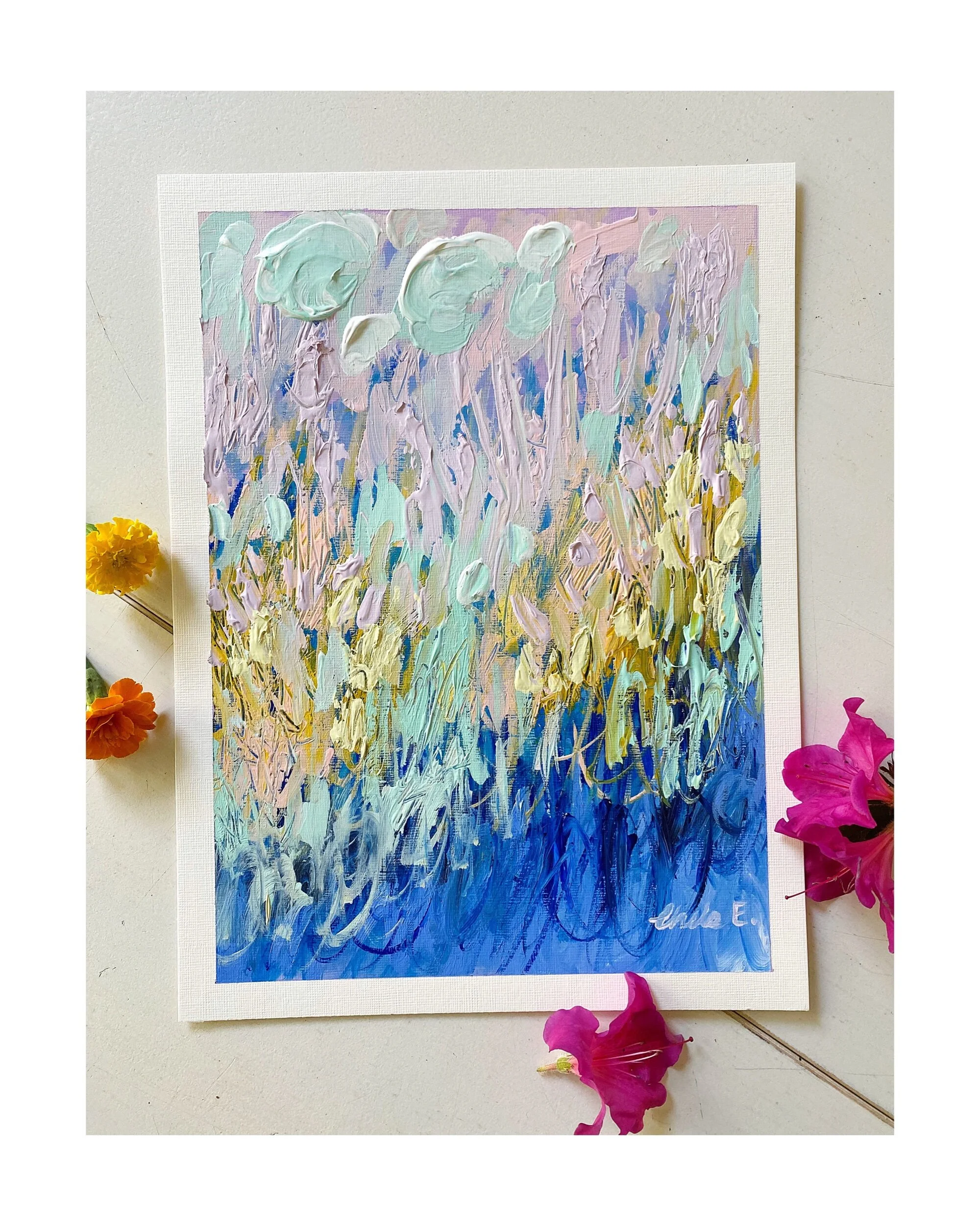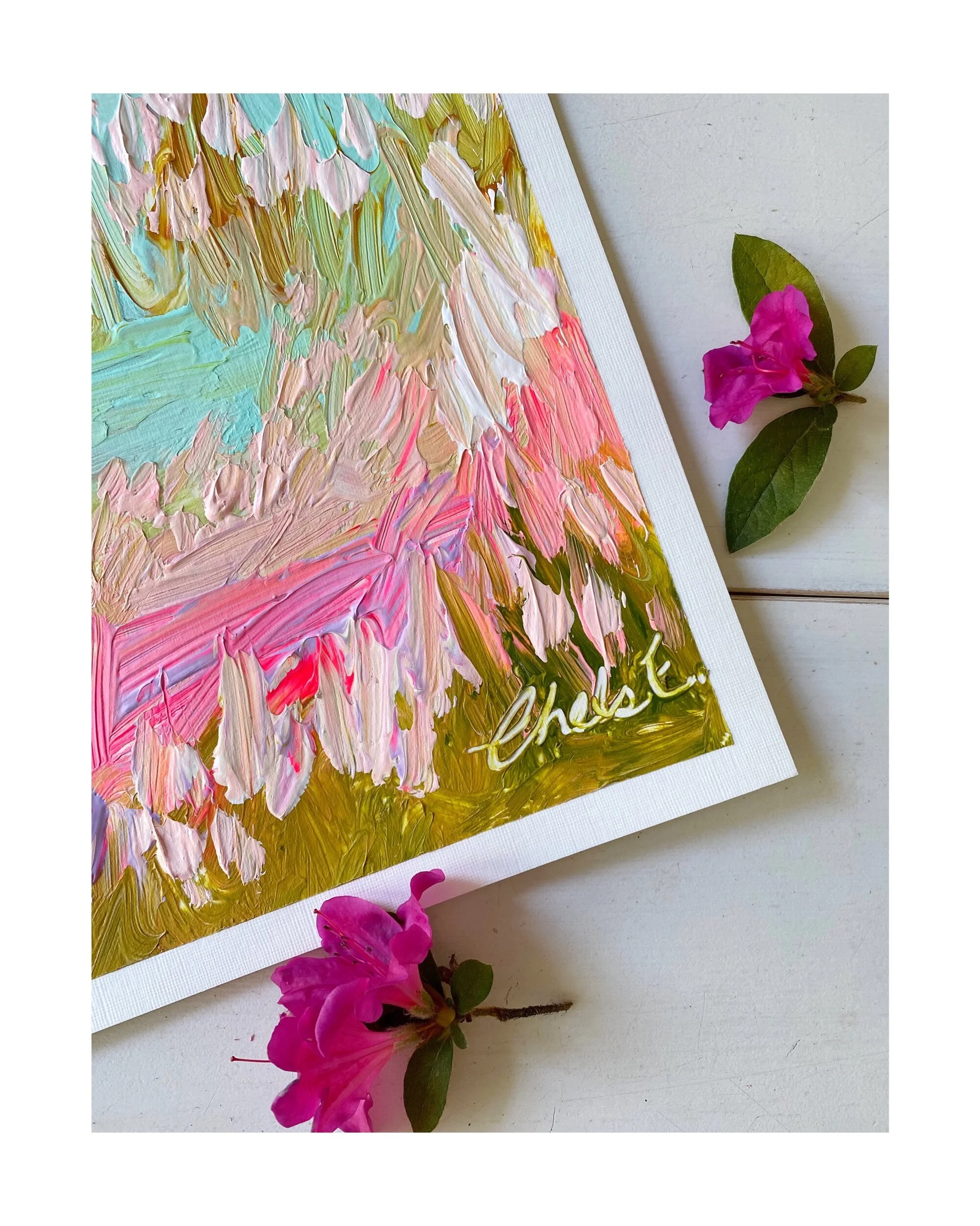 My paper landscapes are created mainly with my palette knife and luscious heavy body acrylics on Arches 300lb paper. I only use high qulaity products in each creation.