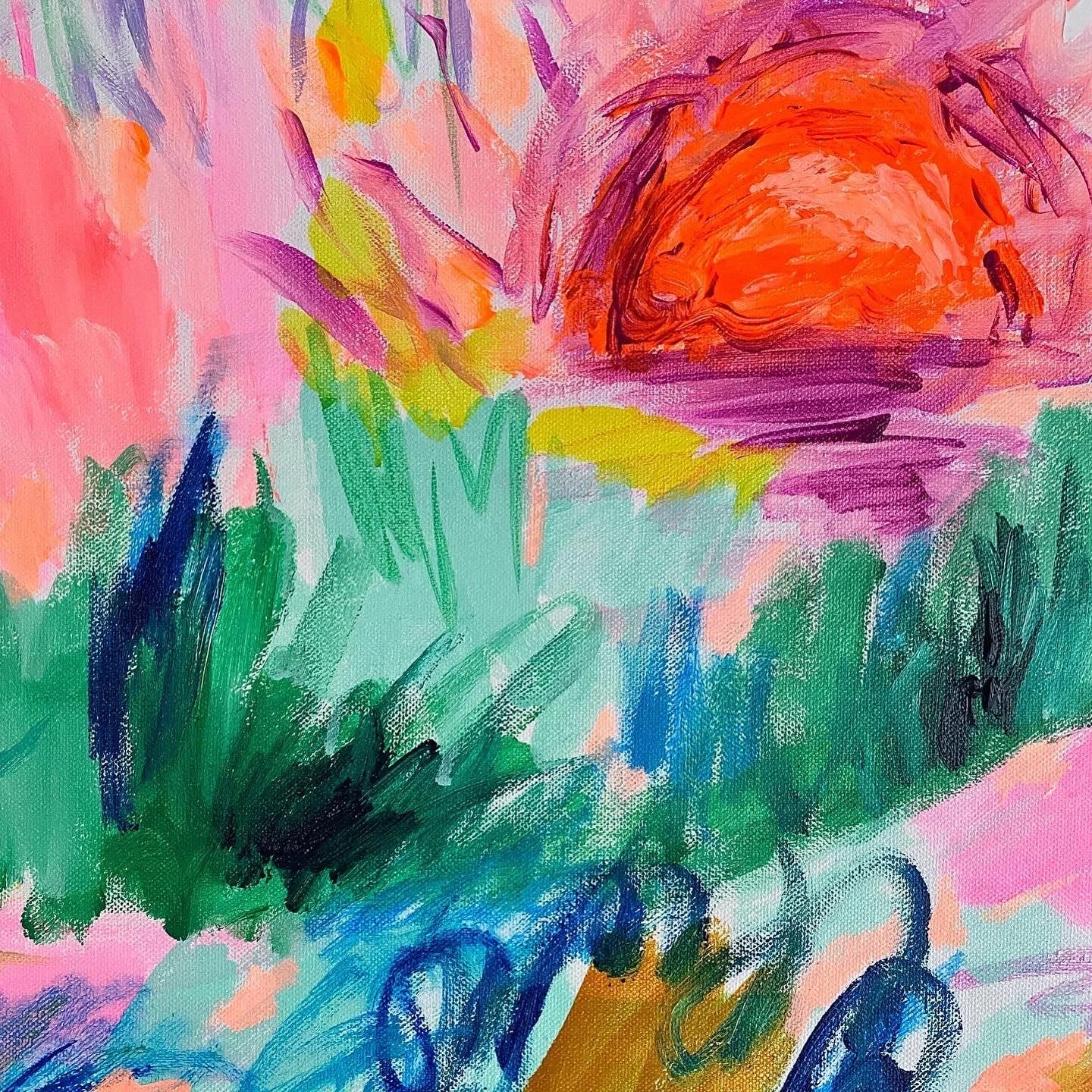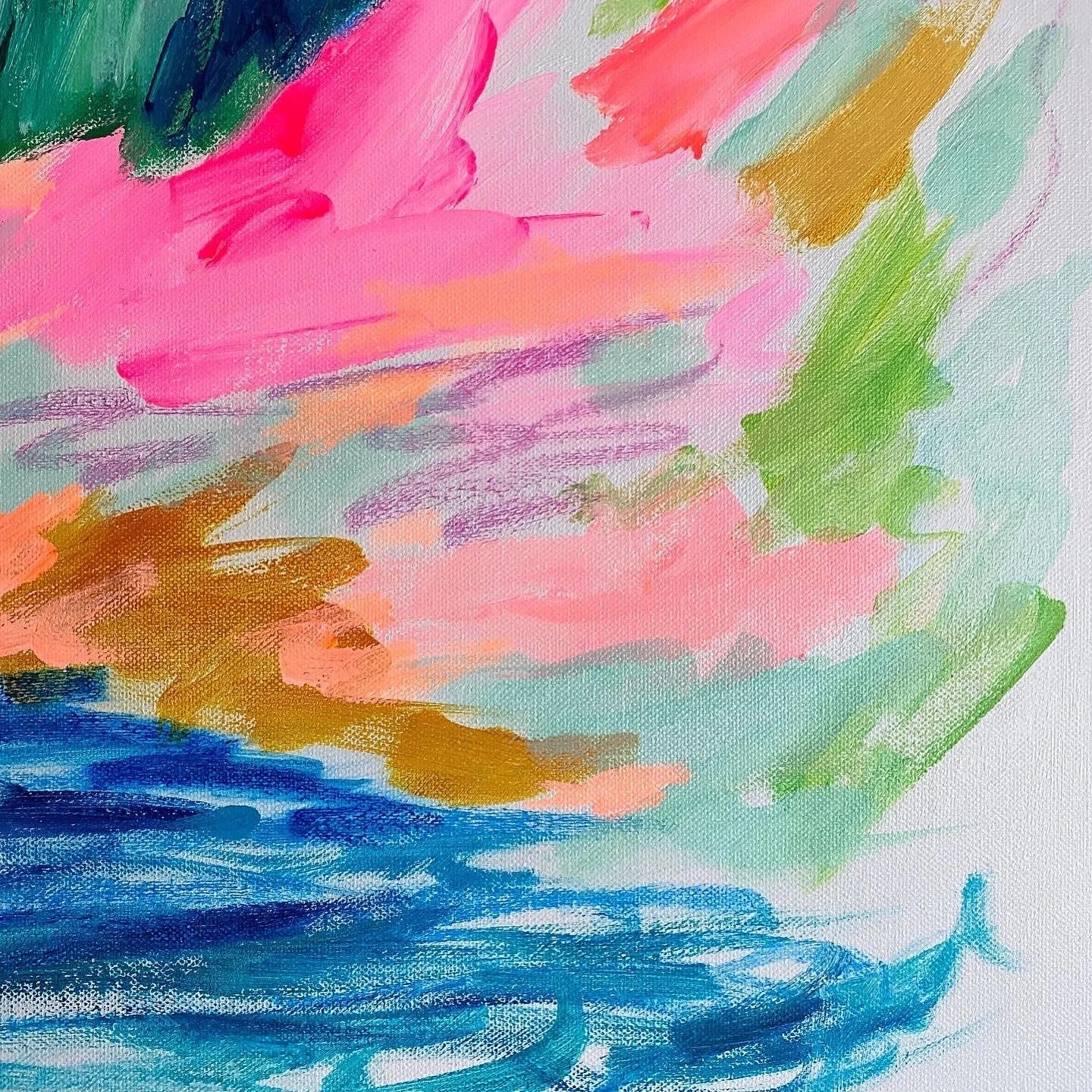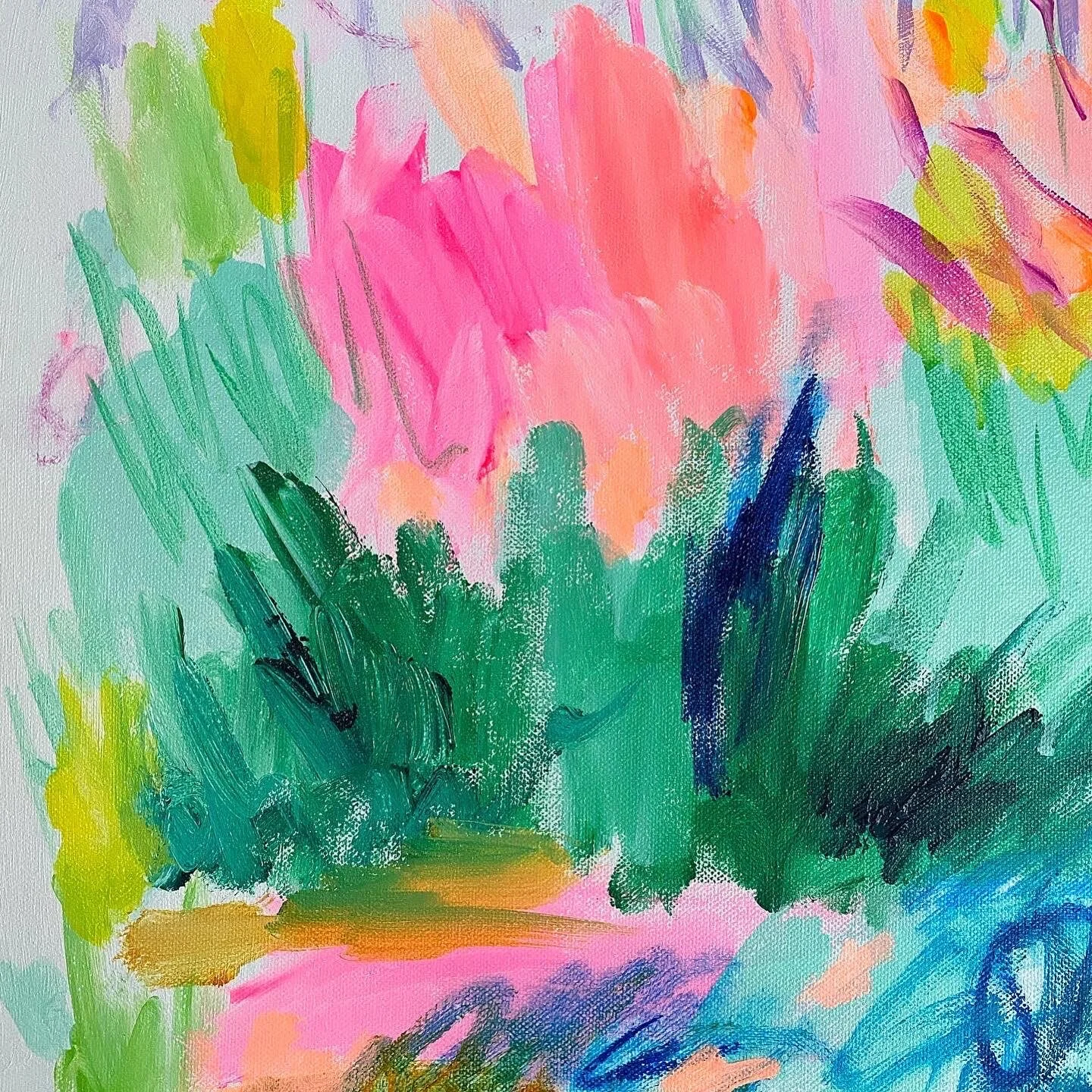 This beautiful abstract floral is bright, joyful and dancing with movement and a calming energy. You can float away on the wind into a dream as you gaze at this blooming beauty.